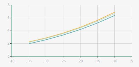 | 蒸發(fā)溫度 | 制冷量+/-5% | 能耗+/-5% | 現(xiàn)在能效+/-5% | 氣體流速+/-5% | 能效+/-7% | ||||
