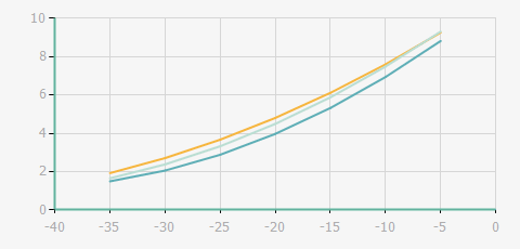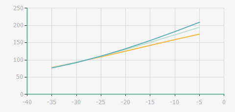 | 蒸發(fā)溫度 | 制冷量+/-5% | 能耗+/-5% | 現(xiàn)在能效+/-5% | 氣體流速+/-5% | 能效+/-7% | ||||