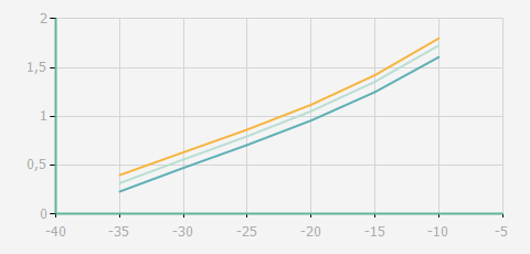 | 蒸發(fā)溫度 | 制冷量+/-5% | 能耗+/-5% | 現(xiàn)在能效+/-5% | 氣體流速+/-5% | 能效+/-7% | ||||